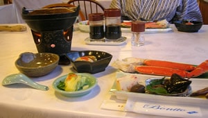 the appetizers; two ice-cold bottles of Sapporo beer. Winter and summer