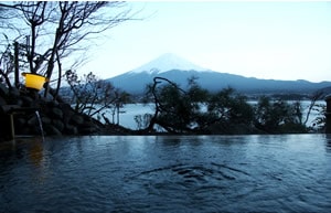has an unobstructed view of Mt. Fuji from the rotenburo (outdoor spring)